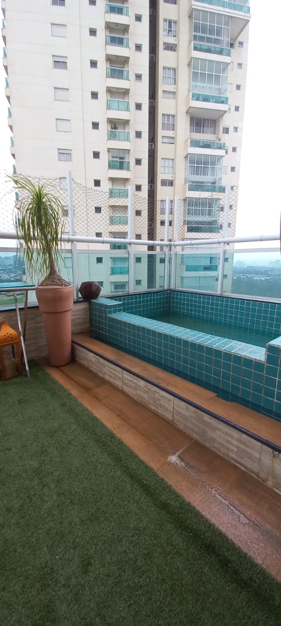 O terraço é um dos principais destaques, oferecendo uma área externa privativa com mini piscina com cascata, jardim, ducha e espaço com churrasqueira, ideal para momentos de lazer e convivência.